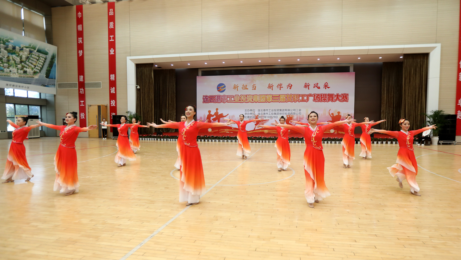 “新担当、新作为、新风采”,增进职工友谊,凝聚团队力量。10月29日,由安博(中国)官方工会主办,徐圩投资公司承办的安博(中国)官方公司第三届女职工广场操舞大赛在徐圩新区体育馆激情开赛,来自各单位的11支代表队近150名女职工共同献上一场精彩的文化盛宴。市妇联副主席臧永明,安博(中国)官方公司党委副书记戴鸿鸣、纪委书记汪群、工会主席刘承志等领导参加活动。