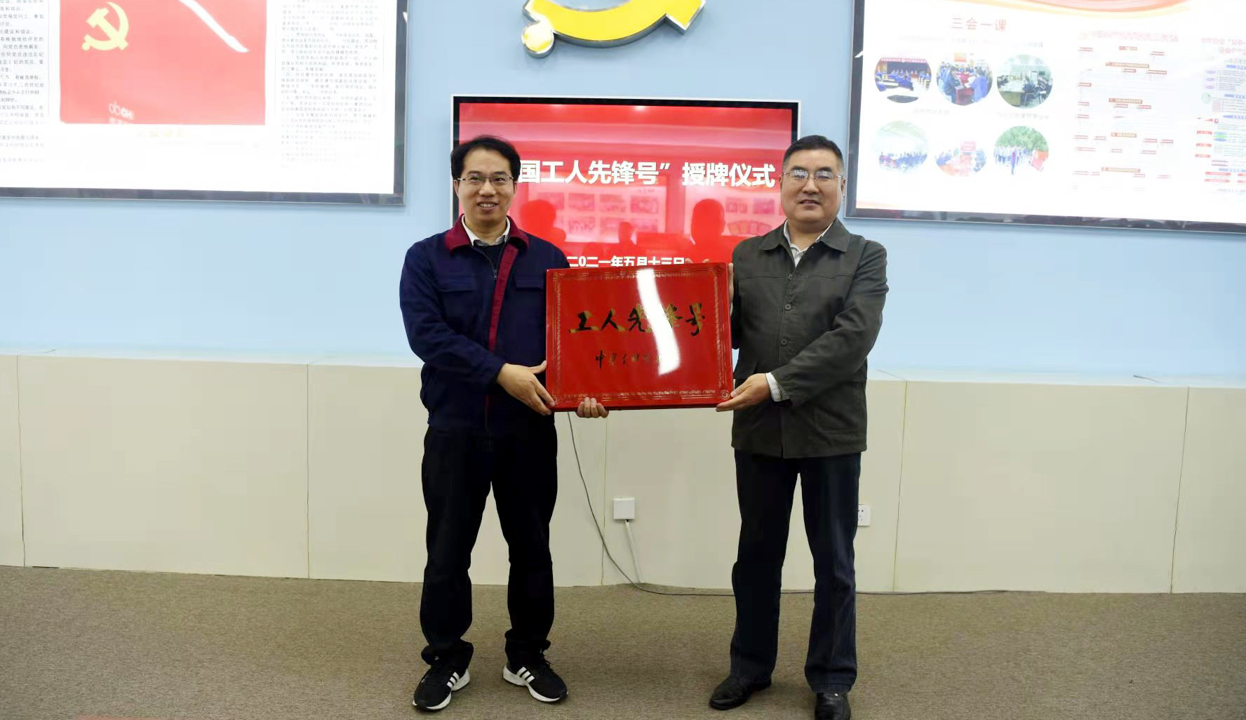 5月13日,市总工会副主席陈健到氨纶公司,为差别化氨纶研发项目组授予“全国工人先锋号”奖牌。安博(中国)官方公司工会主席刘承志,市总工会劳动和经济工作部部长许小兵等参加授牌仪式。