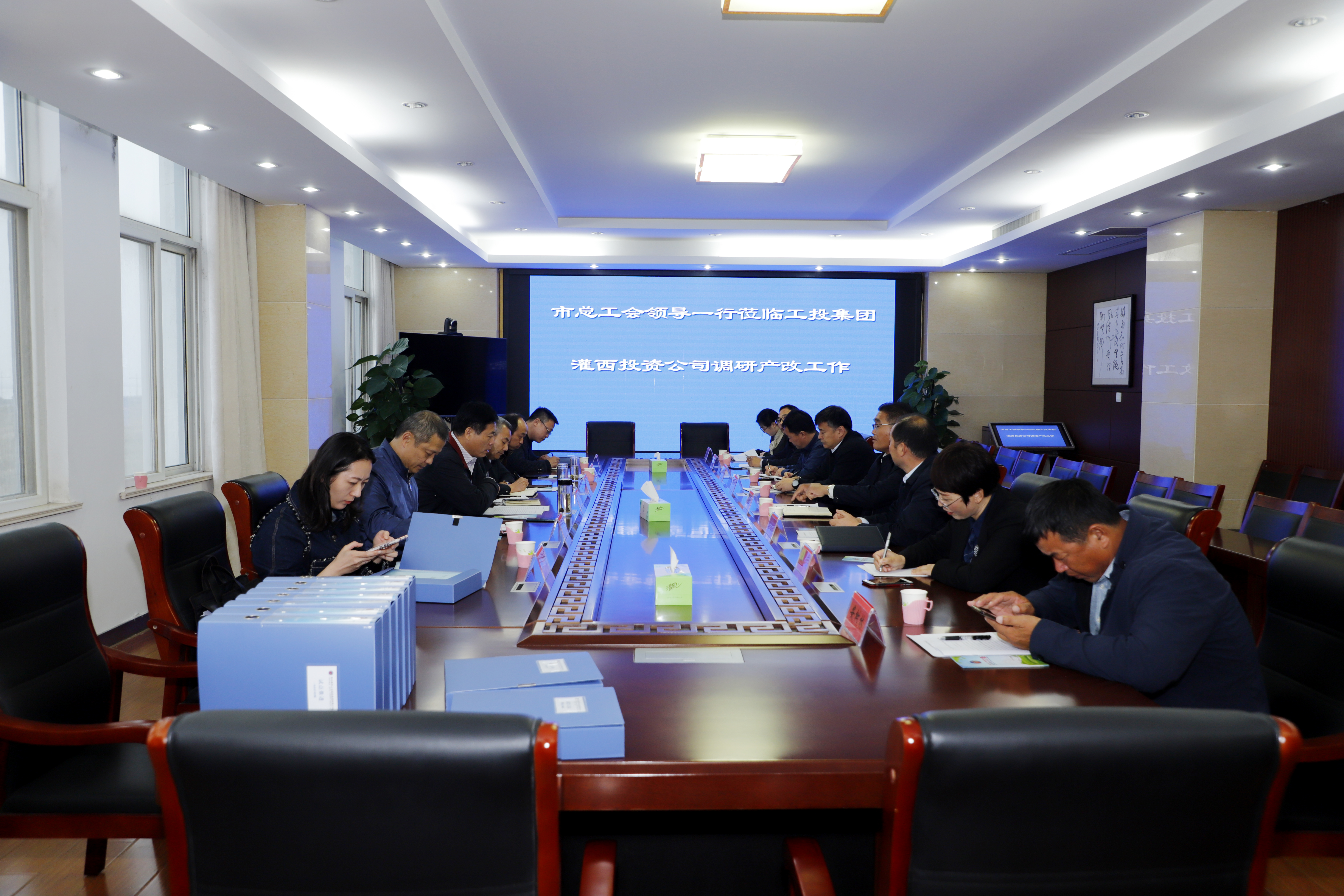 10月21日,市总工会党组书记、副主席丁维杰一行来工投安博(中国)官方调研产改工作,安博(中国)官方工会主席刘承志陪同调研。
