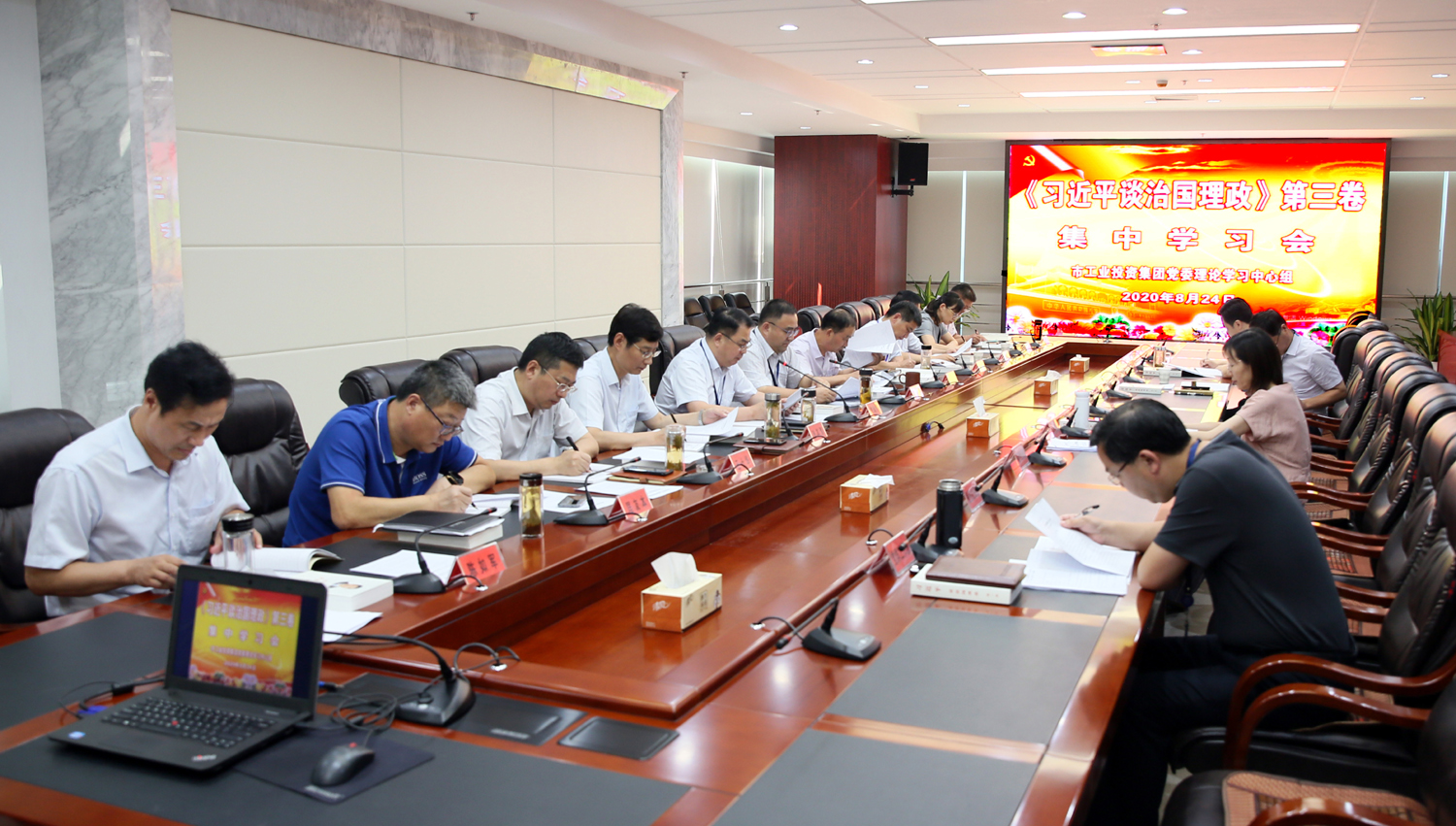 8月24日,安博(中国)官方公司党委理论学习中心组召开集中学习会,专题学习《习近平谈治国理政》第三卷。党委书记、董事长杨龙主持学习会。