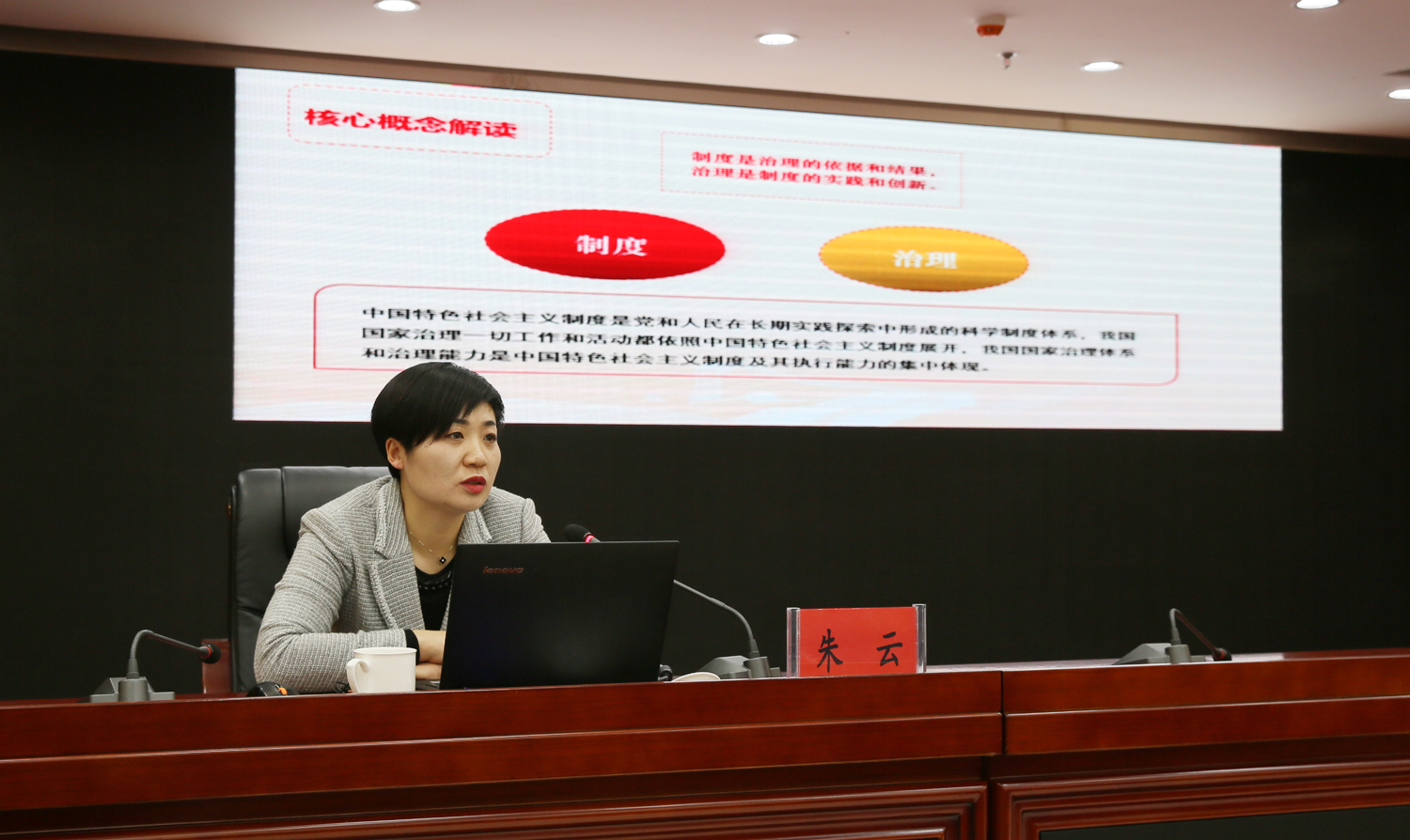 朱云以“开辟中国之治新境界”为题,紧紧围绕党的十九届四中全会精神,系统阐述和深入解读了坚持和完善中国特色社会主义制度、推进国家治理体系和治理能力现代化的重大意义、总体要求、总体目标、重点任务。宣讲报告聚焦重点和关键,将理论与实际、案例与数据相结合,内涵丰富、论述精辟、通俗易懂,令与会人员深受启迪,倍受教育。