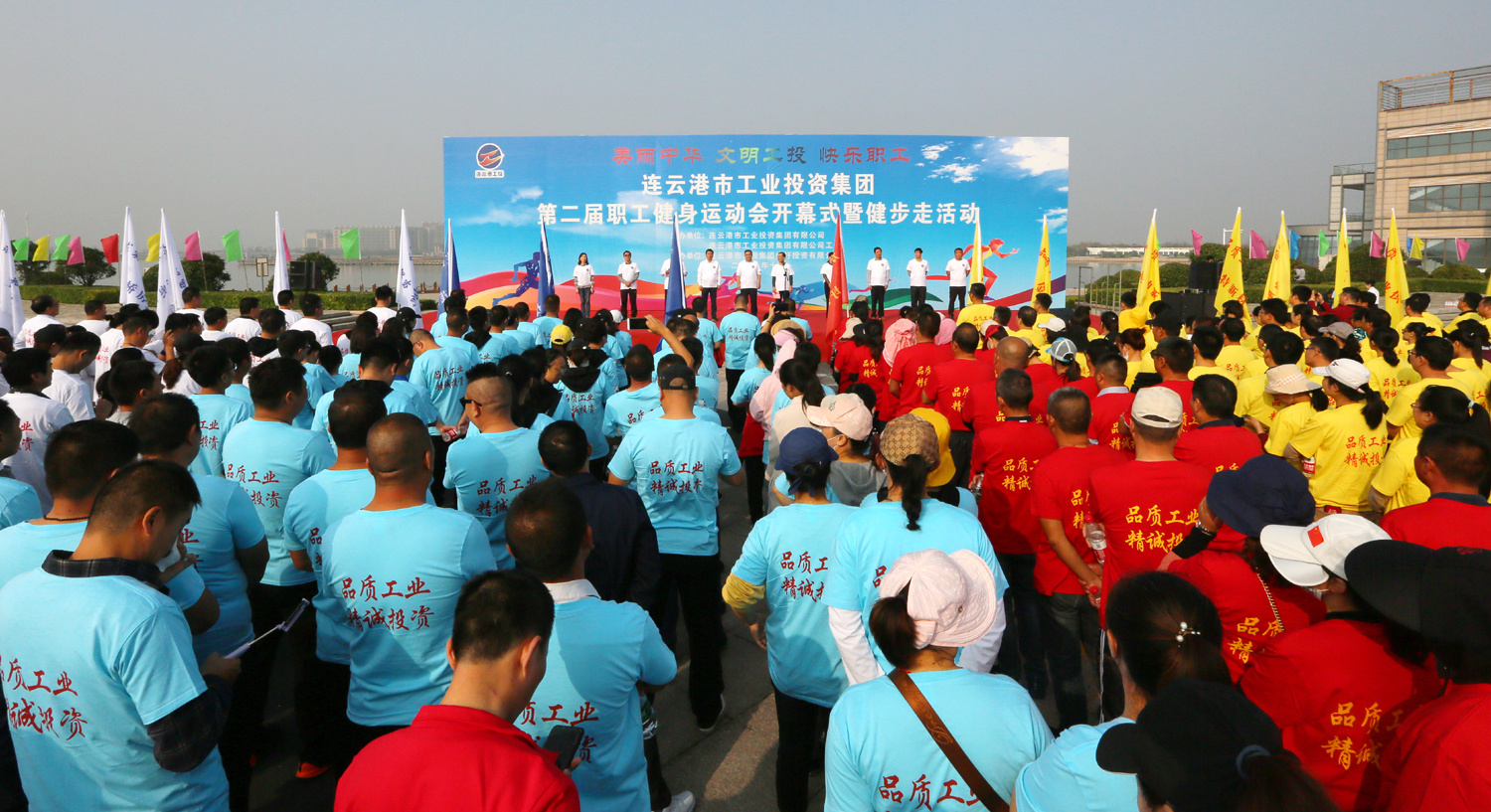 金秋十月,丹桂飘香。10月24日上午,美丽的徐圩新区云湖广场彩旗招展,歌声飞扬,为庆祝中华人民共和国成立70周年,丰富职工业余文化生活,由安博(中国)官方公司、安博(中国)官方公司工会主办,徐圩投资公司承办的安博(中国)官方第二届职工健身运动会开幕式暨健步走活动在这里隆重举行。安博(中国)官方公司党委书记、董事长杨龙宣布第二届职工健身运动会开幕,并为健步走活动发令。总经理胡建明致开幕词。工会主席刘承志主持开幕式。 本次运动会围绕“美丽中华·文明工投·快乐职工”活动主题,来自全公司各条战线的17支代表队1200多人次的运动员参加拔河、跳绳、乒乓球、健步走等项目的角逐。他们以勇夺第一、超越自我的竞赛精神和携手奋进、合力拼搏的竞赛风尚,充分展示工投人追求卓越、共建和谐的优秀精神风貌。本次运动会将对个人单项比赛前六名、集体项目比赛前三名及道德风尚奖获得者给予表彰。