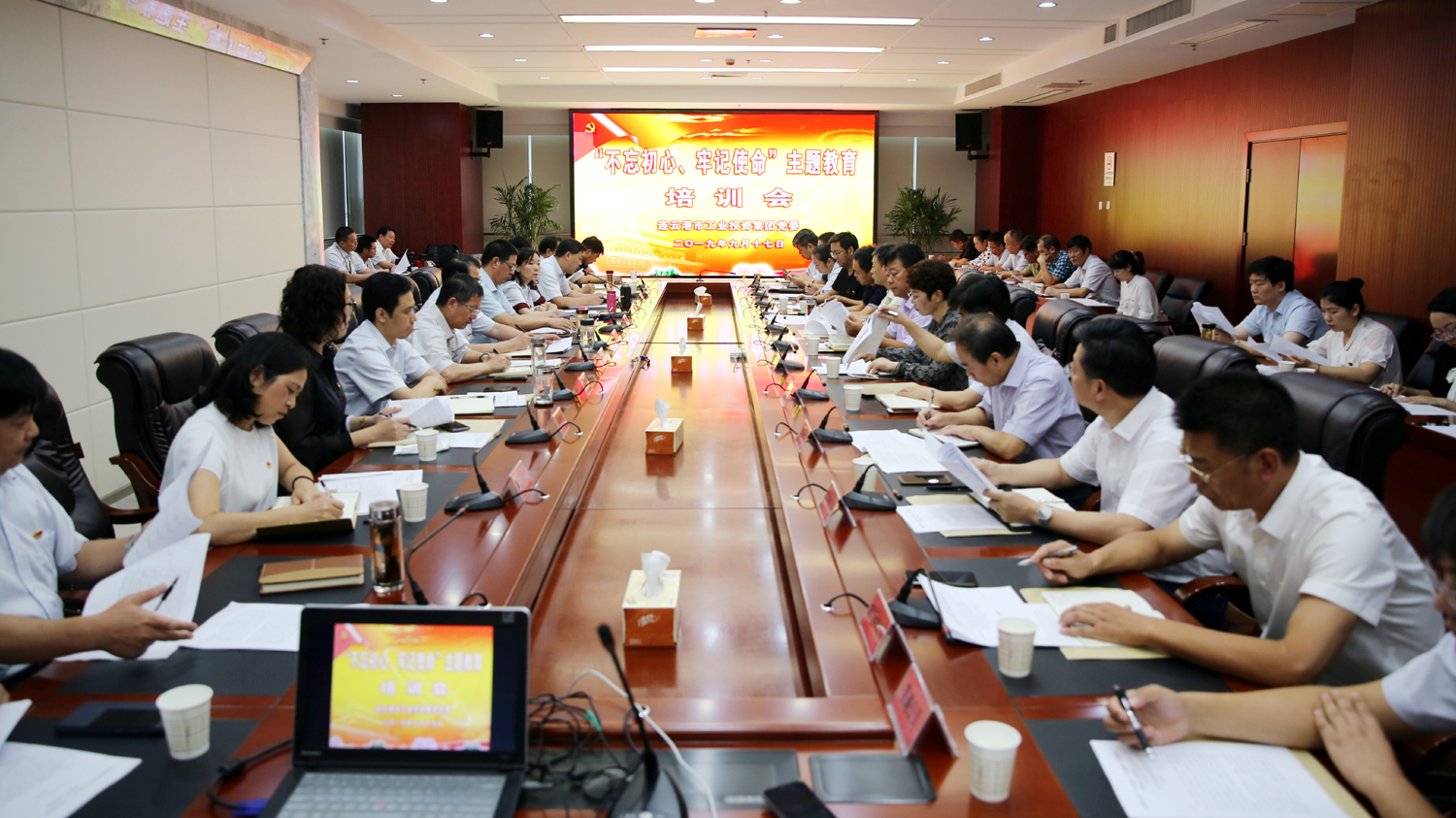 安博(中国)官方公司主题教育领导小组办公室、指导组全体人员,各直属党组织分管党建工作领导和党群工作部负责人参加培训会。
