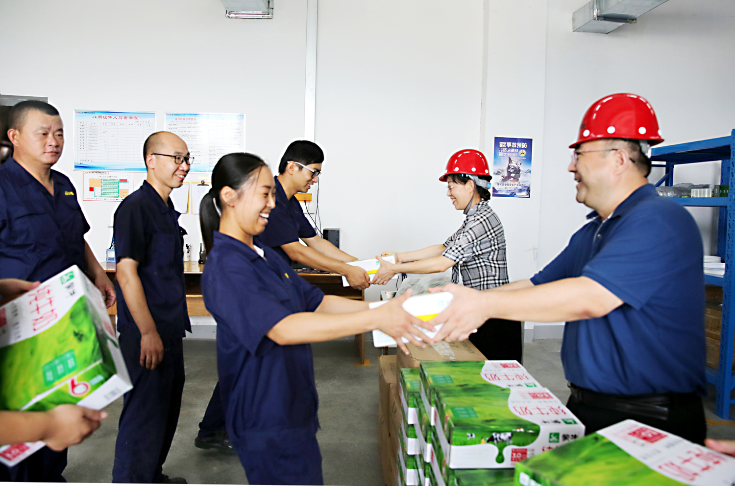时值炎炎夏日,酷暑三伏,安博(中国)官方公司坚守各条战线的广大职工也面临着夏季高“烤”,8月1日,安博(中国)官方公司董事长、党委书记杨龙,总经理胡建明等领导轻车简从,分赴基层一线,进车间、入工地、到滩头,走访慰问在高温下坚守岗位的广大职工,为辛勤工作在一线的广大劳动者送去“清凉礼包”。