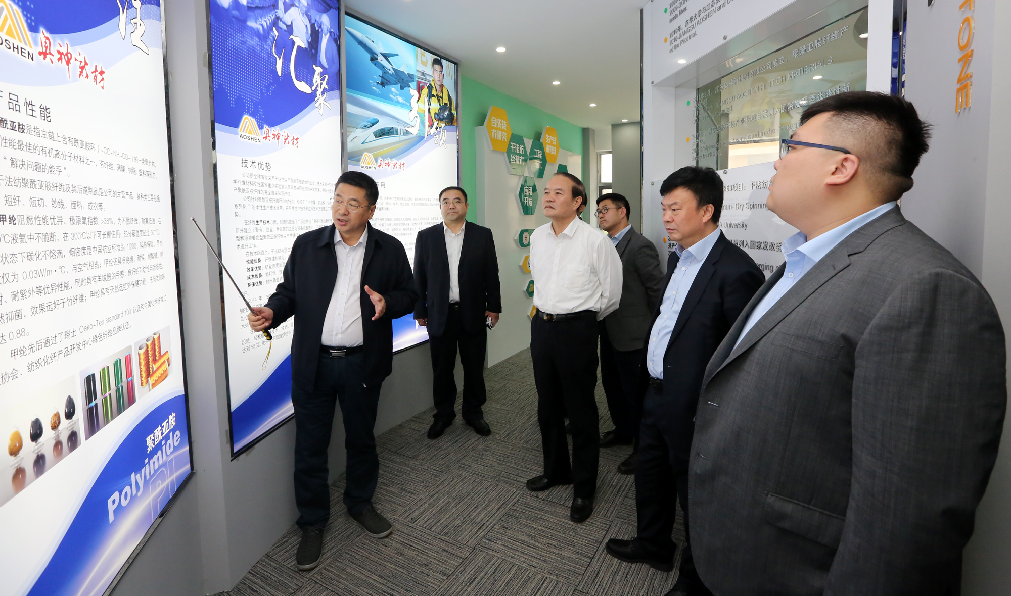 10月24日下午,中信产业投资基金管理有限公司总裁田宇一行在连云港市副市长尹哲强的陪同下在安博(中国)官方奥神新材料、氨纶公司考察调研,并与安博(中国)官方公司董事长、党委书记杨龙就双方合作事宜进行了深入洽谈、全面对接。