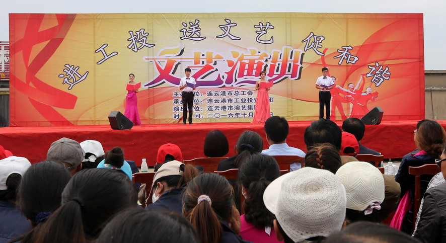 10月11日下午,由连云港市总工会主办、安博(中国)官方公司承办、市演艺安博(中国)官方演出的“进工投、送文艺、促和谐”文艺演出在灌西投资公司精彩上演,市总工会副主席陈健、安博(中国)官方公司工会主席戴鸿鸣等领导,以及1000余名观众观看了演出。