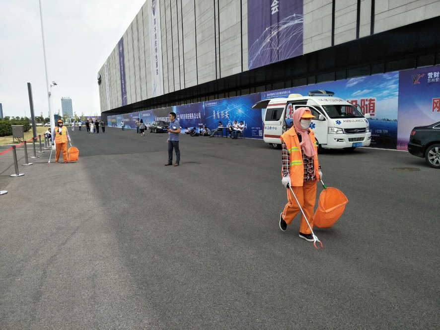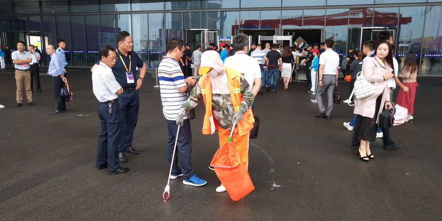 914日,连续忙碌了两个礼拜的职工们还没来得及休息,便又投入到“连博会”的准备工作中去。由于本届“连博会”共有来自27个国家和地区的420家企业参展,展览总面积达3.7万平方米,各家展商在布置展台时,各类生活垃圾、装修垃圾等一度将该公司布设的100多个垃圾桶都塞满了,在安排好人工清理的同时,该公司还安排垃圾清运车对积存垃圾进行清理清运,组织洒水车对会场及周边道路进行冲洗,一直到918日晚上9点左右才完成准备工作。19日“连博会”开幕当天,负责现场保洁工作的职工们早上6点多就赶到了会场,冒雨在会场周边开始忙碌,一台大型清扫车和一台洒水车也在会场旁随时待命。到了中午,当展商们在室内小憩的时候,室外的职工们为了不耽误事,站在风口匆匆地扒拉两口混杂着雨水的盒饭,就又投入到紧张的清理工作中去。仅19号开幕当天,累计清理各类垃圾7吨左右,为“连博会”的正常召开提供了一个干净、整洁的会场环境。