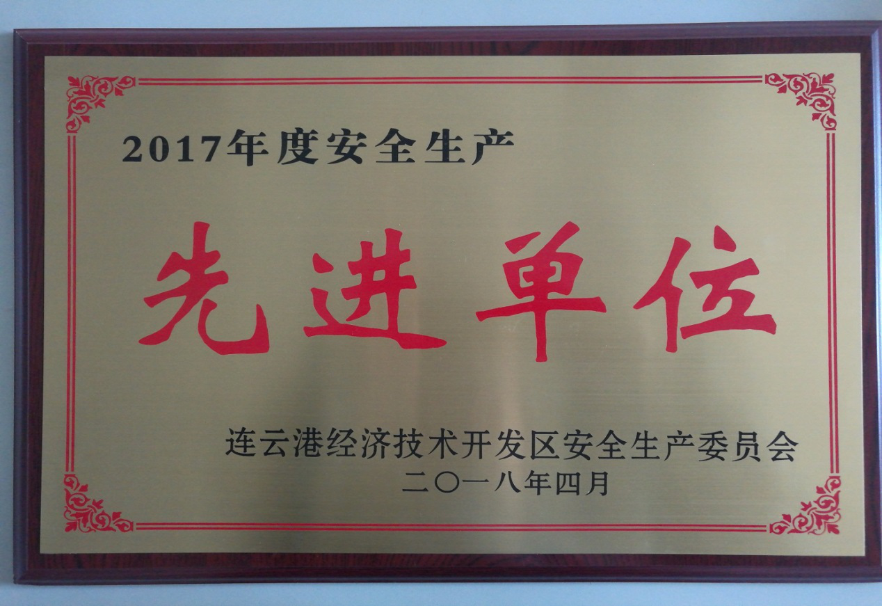 2018年4月28日,开发区2017年度安全生产会议在新海连大厦召开。会上对18家“安全生产先进单位”和26名“安全生产先进个人”进行了表彰。我公司荣获2017年度开发区“安全生产先进单位”荣誉称号。(氨纶宣)