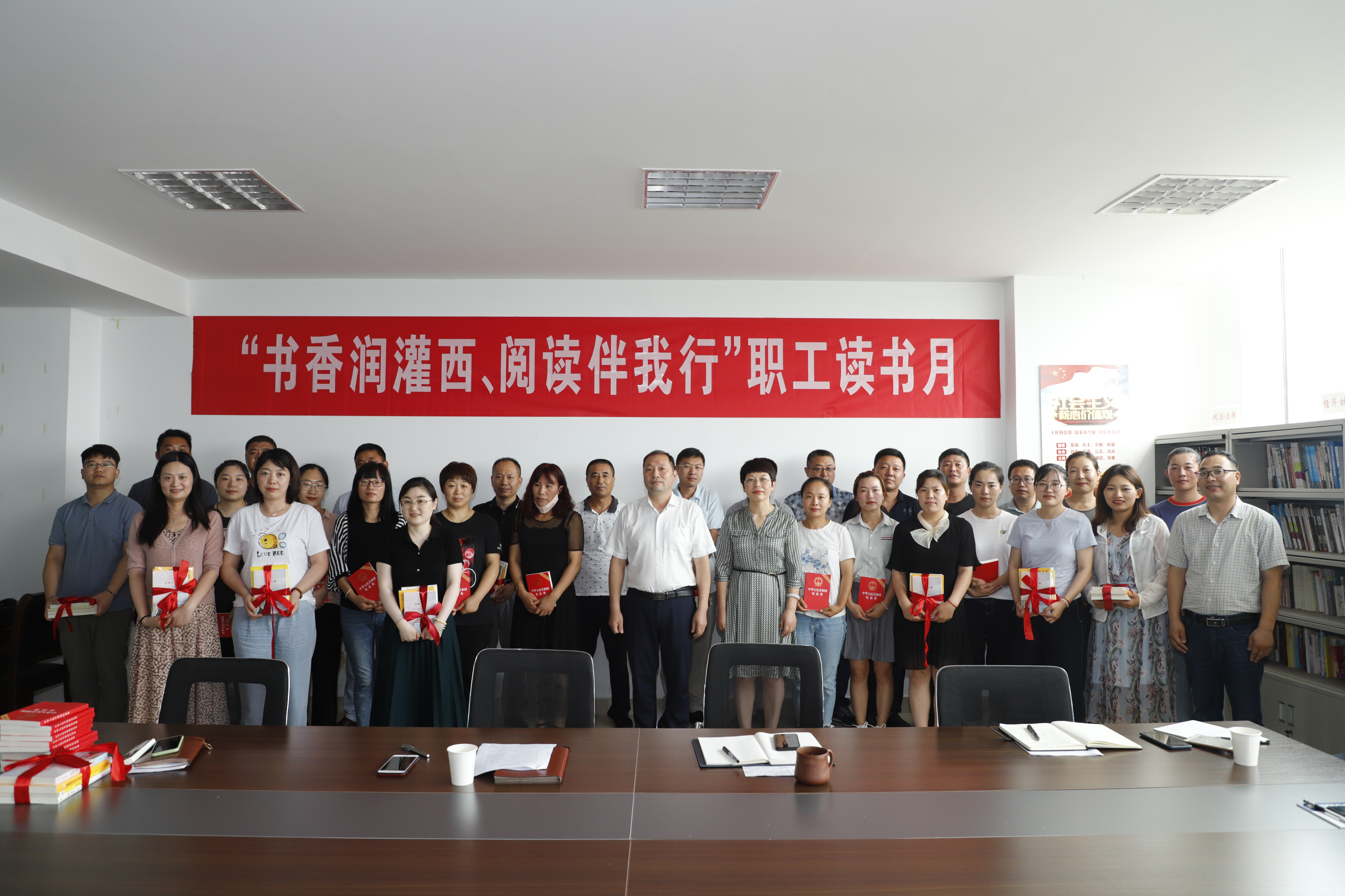读书正当时,莫负好时光。为大力倡导全民阅读的生活方式,激发广大干部职工爱书、读书的热情,灌西投资公司工会在产改如火如荼之际,开展“职工读书月”“六个一”系列活动,全面提高广大员工的人文素养。活动现场,党委副书记、工会主席王宏作了热情洋溢的致辞,工会副主席庄忠明着重宣读了“职工读书月”活动方案,杨婕、唐蕾荣等8名职工代表分享读书心得、畅谈读书感悟,党委书记、董事长李国文为10名基层分会主席、16名女工主任赠送了《读书是一辈子的事》、《亲密关系》等书籍,并作了语重心长、情真意切、字字珠玑的精彩讲话。(灌西 工宣)