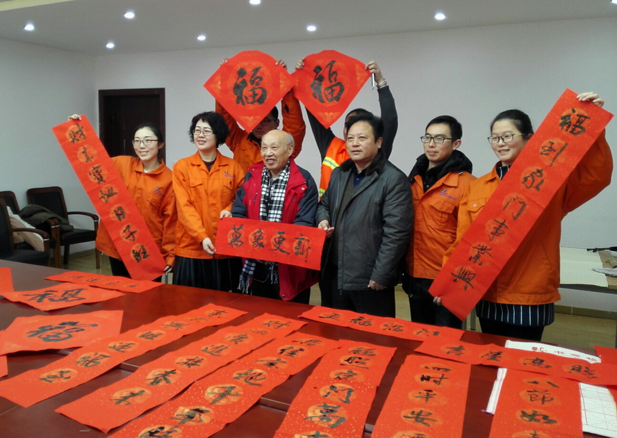 1月20日,连云港市杂文学会邀请陈凤桐等3名知名书法家走进华茂绿化工程公司,为一线环卫职工写春联,送上浓浓的新春祝福!