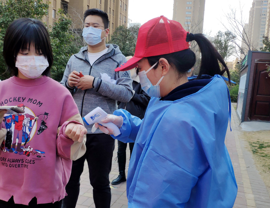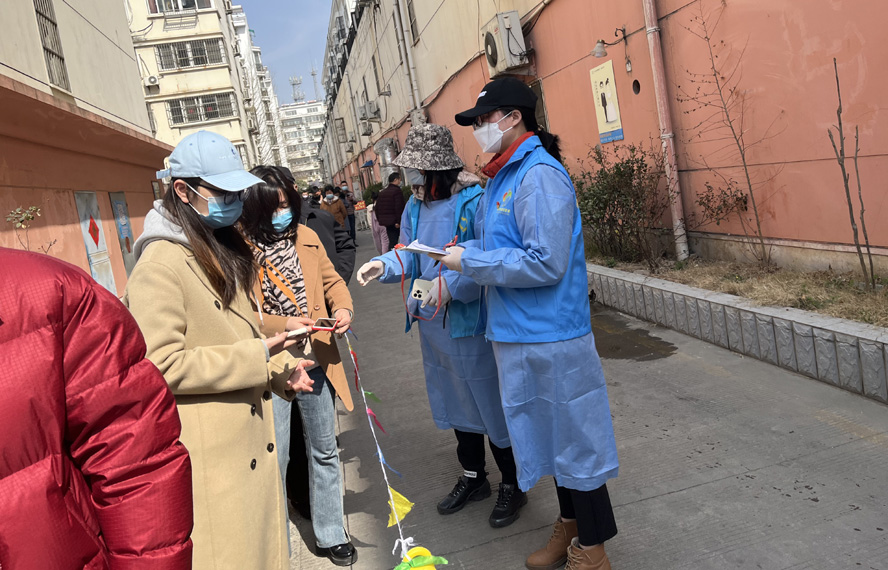 除了在岗员工,还有退休党员秦英、孙芳等,在疫情发生前,他们是公司内退党员,在疫情爆发以后,他们是无所畏惧的抗疫战士。随着连云港开始第一轮全员核酸检测,工作人员和志愿者都严重短缺,每天确诊病例激增的数据都令人触目惊心。当看到招募志愿者的公告时,秦英热血沸腾。“党和人民需要我,我的家乡需要我!”主动联系海州区幸福路街道西大岭社区,在咨询志愿者报名的同时,郑重地并向社区递交了一份疫情防控“请战书”。