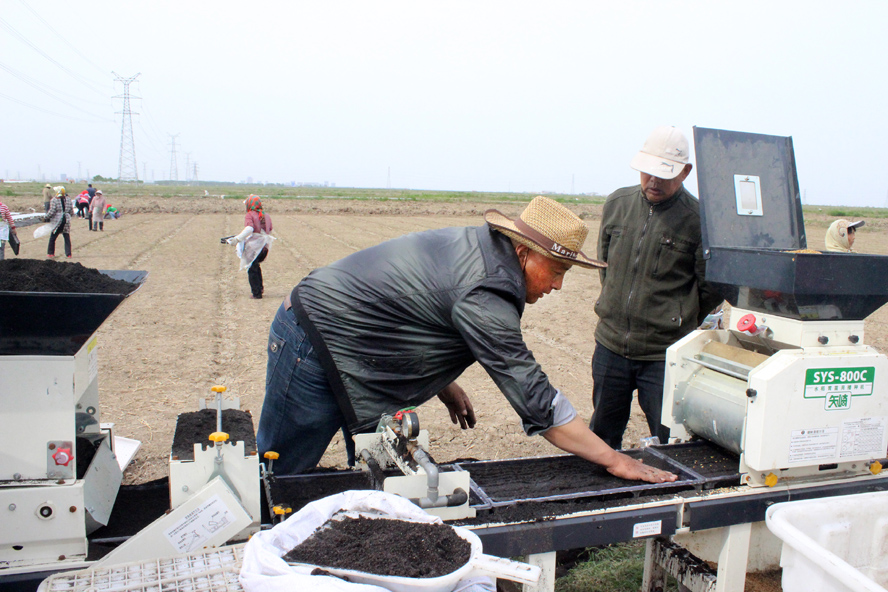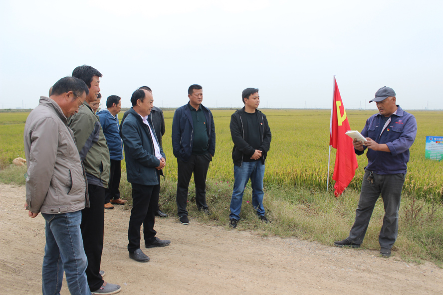 “今年,这片盐碱地上水稻亩产量估计要突破1400斤了,现在稻苗的长势比去年还要好呢”,青口投资公司党员赵华兵拔出一穴稻苗高兴地说道。