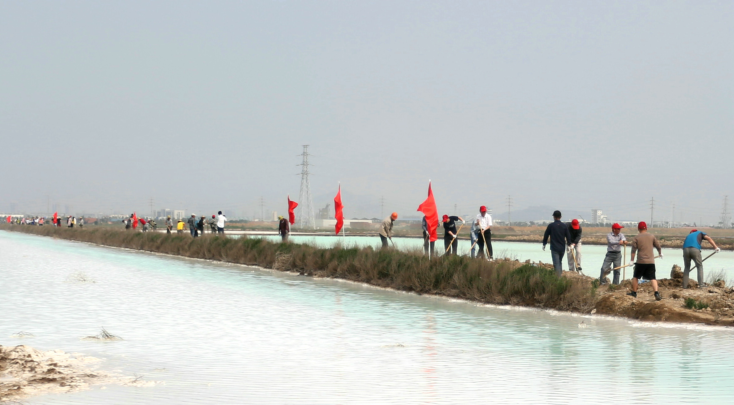 6月13日下午,来自公司机关第一、第二党支部及临达公司、海州湾公司、金台公司、海滨工区等六个党支部的百余名党员志愿者,自行解决交通工具和劳动工具,顶着炎炎烈日,齐聚242省道北侧1公里处的临达公司新建钙液输送管道现场,“一”字型排开,在近600米的沟堰上展开管道铺设沟道回填土工程,场面蔚为壮观。