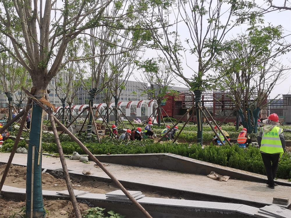 近日,笔者走进医创园项目二期现场,室外绿化工程、室内吊顶装修、地砖铺设等工序正在紧张的施工中,掀起了一派热火朝天的项目收尾大干热潮。