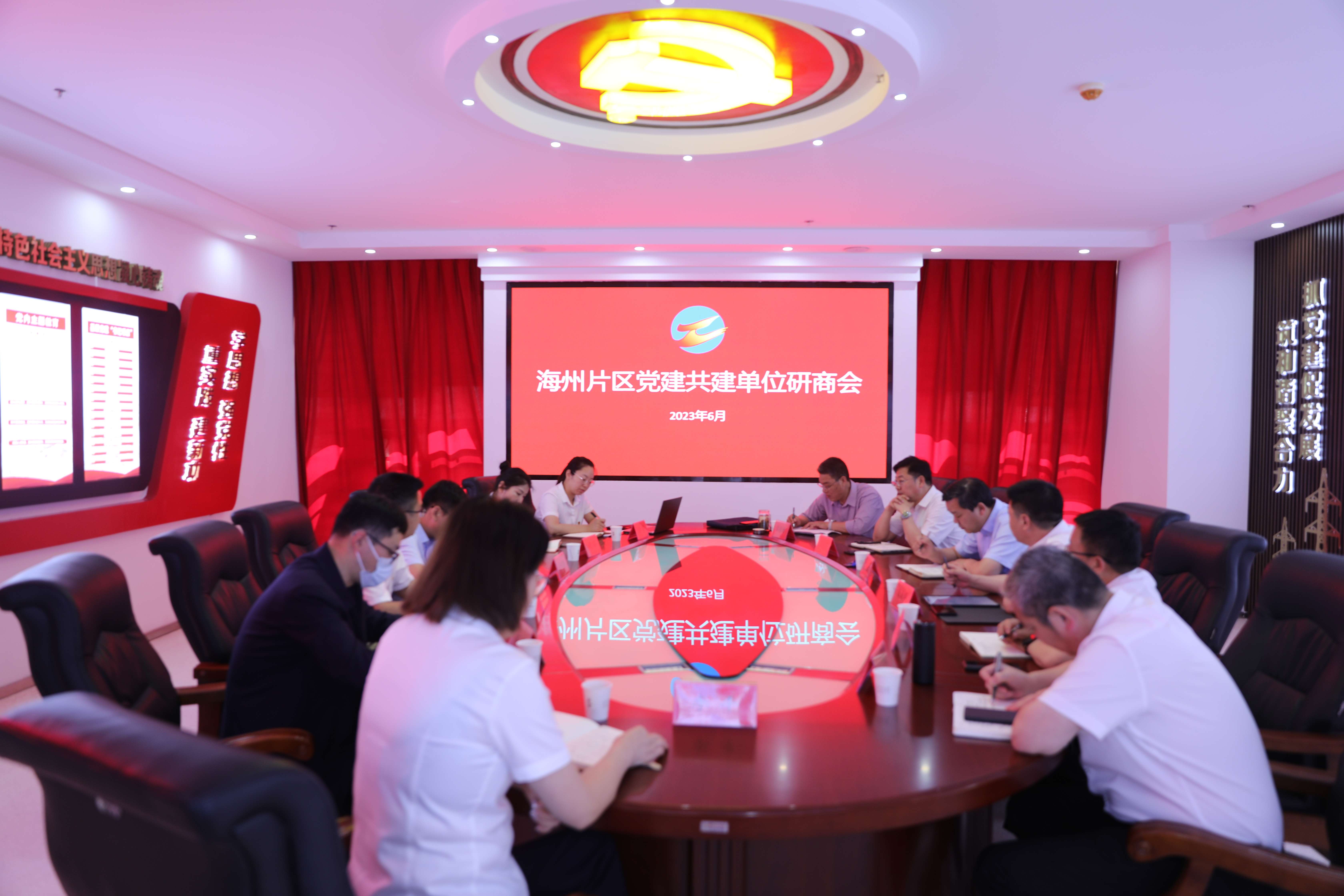 6月14日下午,安博(中国)官方公司海州片区区域党建共建研商会在公司党建活动室召开。安博(中国)官方公司党建人资部部长夏正斌出席会议,机关党委、供电工程分公司党委、房地产公司党总支、金航公司党总支、格斯达公司党支部、供销公司党支部等6家区域党建共建单位参加会议。