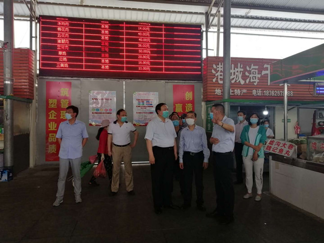 在深入巨龙农贸市场实地查看节日期间工作情况,听取相关介绍后,徐市长充分肯定了巨龙农贸市场双创和防疫工作。他强调,农贸市场是创文创卫窗口单位,更是当前防疫的重点部位,要全力以赴抓好双创和防疫工作,切实保障广大居民群众身体健康和家门口“菜篮子”安全。一是要强化物资储备,进一步巩固防疫工作基础。同时要对市场内口罩佩戴和场所消毒情况进行强化管理,不戴口罩一律不得进入市场;二是要进一步抓好市场内部卫生管理,进一步补齐短板,彻底消除卫生死角,继续加强对市场的日常监督管理力度,实现管理常态化、精细化,确保双创和防疫工作取得实实在在的效果。(电宣)