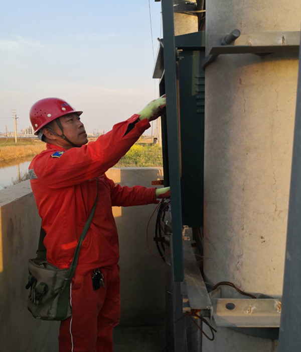 他,工作细致业务硬。多年来,他以所为家,几乎没有节假日和周末。不管是严寒酷暑,还是天气恶劣,只要一有任务,总是抢在前面,毫无怨言,风雨无阻。一次,已经在家休息的他接到所里抢修电话,立马驱车前往现场。经查看,胜利圩一个台变的配电箱和变压器起火,该台变控制着附件1000亩鱼塘和20户居民的用电,如维修不及时,将造成鱼塘缺氧,鱼苗死亡,带来巨大经济损失。为了将损失降到最低,他带领班组成员,克服天气热,蚊虫多等困难,一直奋战到凌晨3点,终于更换完成损坏设备。