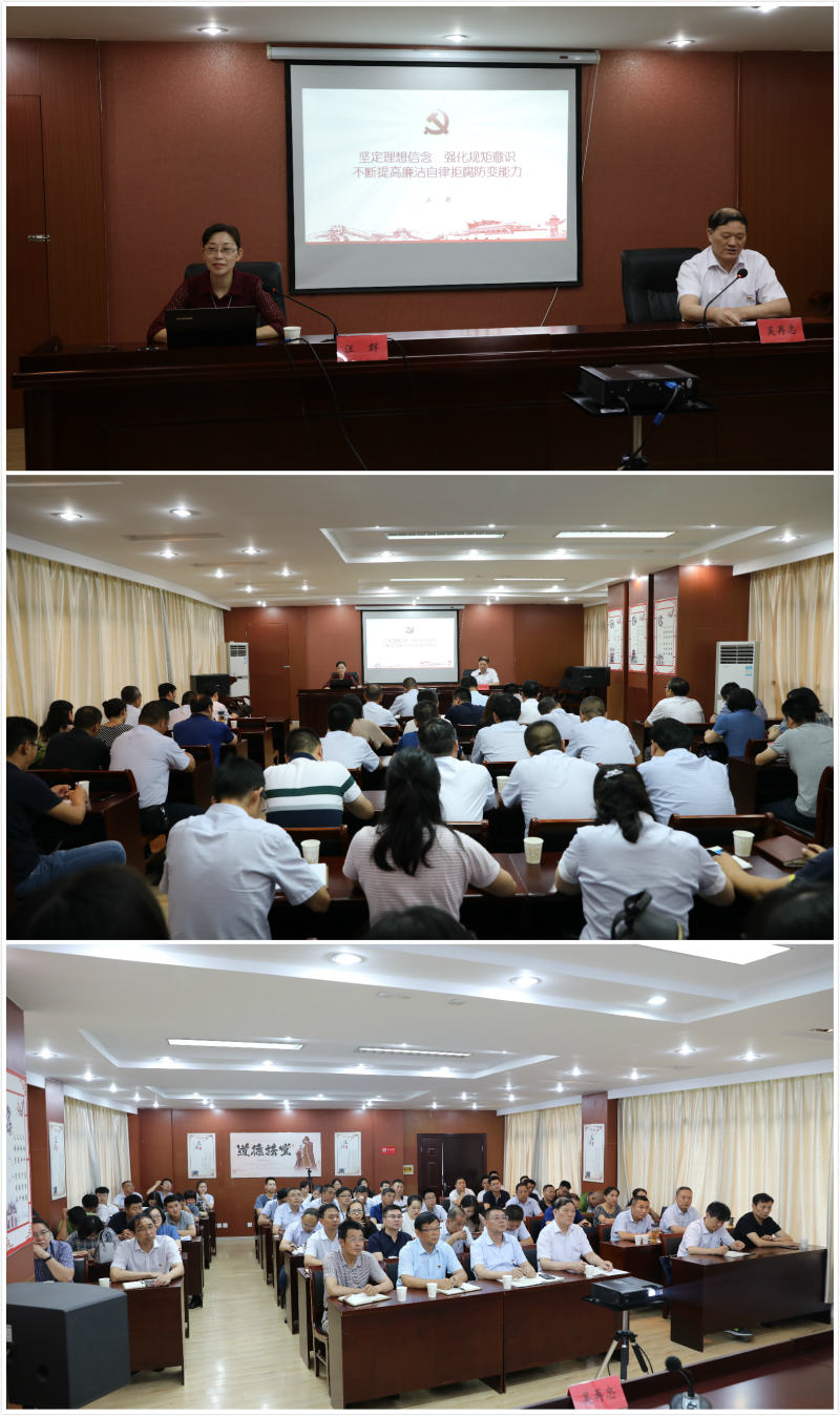 7月16日下午,安博(中国)官方公司纪委书记汪群在金桥房地产党群服务中心会议室,为供电公司和房地产公司部分党员讲了一堂以“坚定理想信念,强化规矩意识,不断提高廉洁自律拒腐防变能力”为主题,以党风廉政教育与反腐败警示教育为主要内容的专题党课。双方单位的领导班子成员、各基层单位班子成员、各部门负责人以及涉及招标采购、工程建设、财务审计等岗位相关人员参加党课。党课由供电公司党委书记吴再忠主持。
