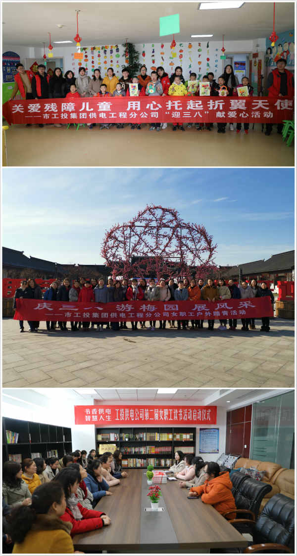 2019年“三八”国际妇女节来临之际,公司女工委开展了“庆三八 展风采 提素质”系列活动。女职工们走进儿童福利院献爱心,踏进梅园览风光,安坐读书屋提素质。