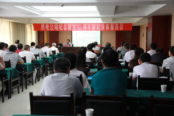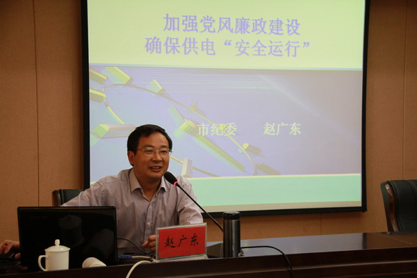 628上午,公司党委邀请市纪委监察一室主任赵广东同志为广大党员干部作了《加强党风廉政建设,确保供电安全运行》的辅导报告,报告会由公司党委书记、总经理范益宝主持。