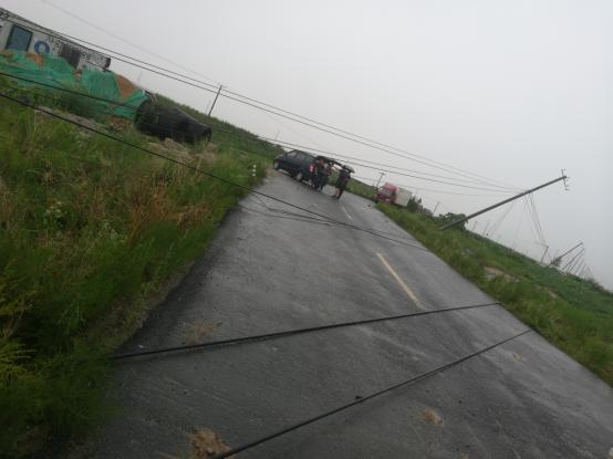 8月12日,连云港普降大到暴雨,徐圩新区徐新公路附近出现了龙卷风等突发强对流天气,导致供电局18根电线杆断杆,2台开关遭雷电击穿,35KV线路停电。台南供电所辖区张圩小区、幸福家园道路沿线也遭受到不同程度的破坏,现场2根电线杆断裂、多根电杆倾斜、架空导线掉落地上,道路交通一度瘫痪。