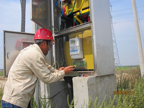 夏季即将来临,青口供电所组织人员对养殖户的表计、互感器倍率、封印、接线等方面进行全面检查,以保证计量准确无误。图为工人在做计量检查。(宋忠文)