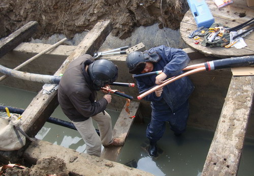 此项改造工程要求将原来的电杆高架改为地下电缆铺设,距离800米,双线电缆,两条出线,工程量130万元,并在春节前结束,确保新医药产业区的美化和亮化。施工正值隆冬季节,天气寒冷,给施工带来很大困难。职工们发扬不怕苦、不怕累的精神,破开冻土层,理顺冷缩的电缆,沿预设管道穿越。零下9度的气温,伴着呼呼的北风,刮在人的脸上象针剌,握着操作工具的手,有时不听使唤,掉落地下,重又拾起。寒冷中,额头沁出汗珠,身上透出热气,忽冷忽热,使人身体适应环境极不协调,给人健康带来不利。