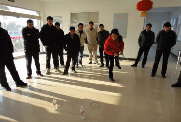 1月23日,为放松员工心情,让大家过一个欢乐的春节,台南供电所组织全所员工开展掼蛋、套圈、投篮等一系列文娱活动,丰富职工的生活,并向获胜人员分发了奖品。 该所分三个场地,交错开展三项活动。掼蛋共分四轮,你追我赶,争夺最为激烈;套圈和投篮相对轻松,时常爆出阵阵笑声。通过争夺。通过活动的开展,营造了节日氛围,提高了员工的团队意识。(孙维兵)