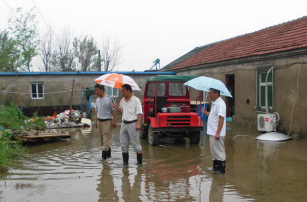 7月9日上午一上班,宋跳农场场长赵怀忠带领任志明、骆功勋、孙习年、于怀前等同志检查场区和居民区。在整个暴雨过程中,居民区房屋没有发生险情,但地面积水较多,对个别居民用电不符合规范的,要求立即整改。清源水泥制品厂的石棉瓦大棚局部有坍塌危险,该场当时就下发整改通知单,限期7月20日前完成。农户棉花地局部受淹,农田积水于当天下午基本排掉。场区基本没有积水,但办公室在暴雨过程中有漫水现象。职工上班后,清扫办公室卫生,陆续恢复正常办公。(任志明)