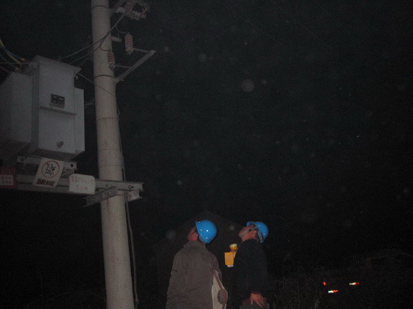 近日,青口供电所为防止配变设备被盗,加强对偏远地区设备的检查。图为职工夜间进行巡视。(宋忠文)
