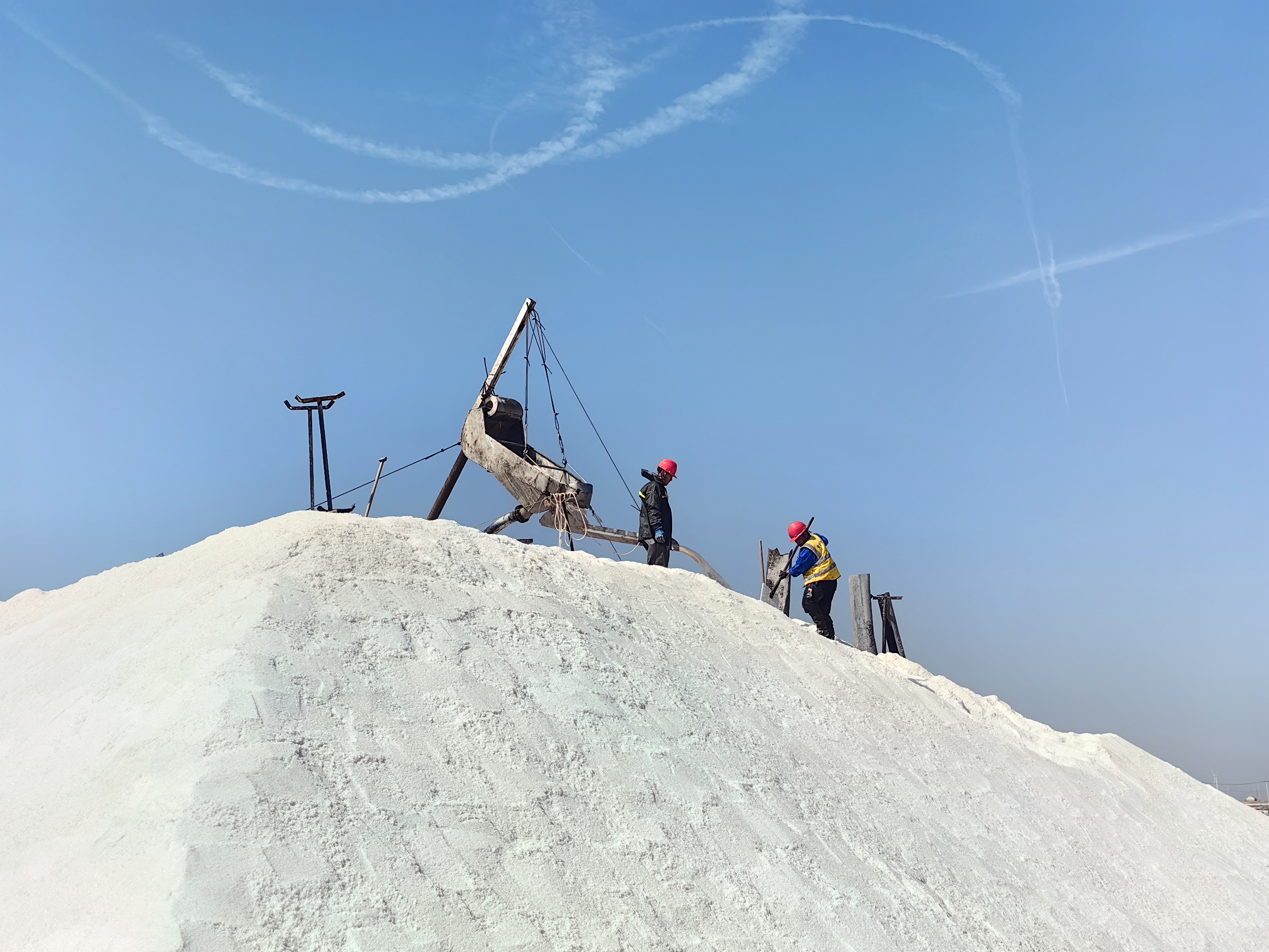 “此次安博网页版新河制盐分公司出动3台扒盐机组,天气回温正常后,安博网页版将再出两台扒盐机组,计划春季扒盐18万吨。”新河制盐分公司经理程龙讲道。