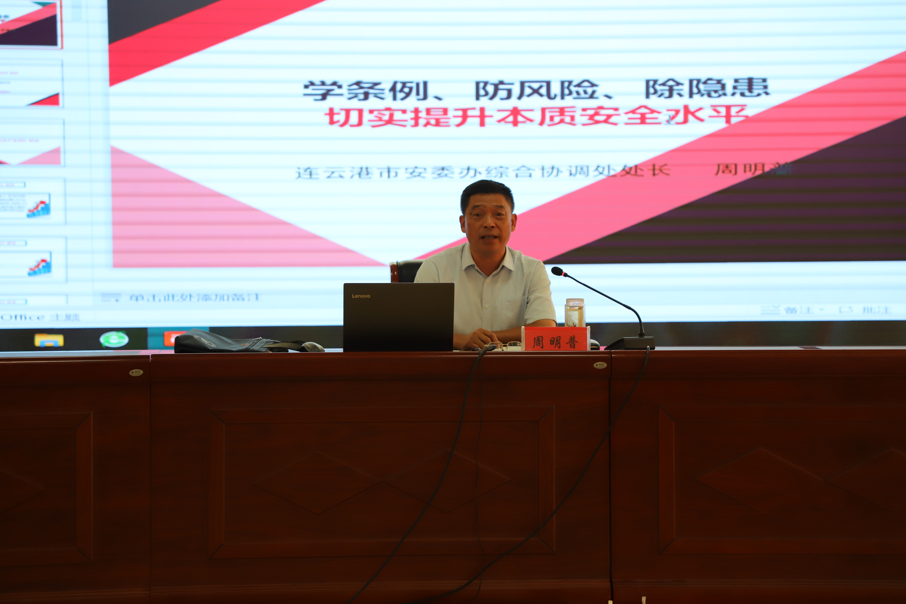 周处长对新《江苏省安全生产条例》、安全生产重大事故隐患排查整治专项行动、突出抓好当前安全管理重点防范建议作了深入浅出的讲解,同时结合我公司实际,提出很多建设性意见。
