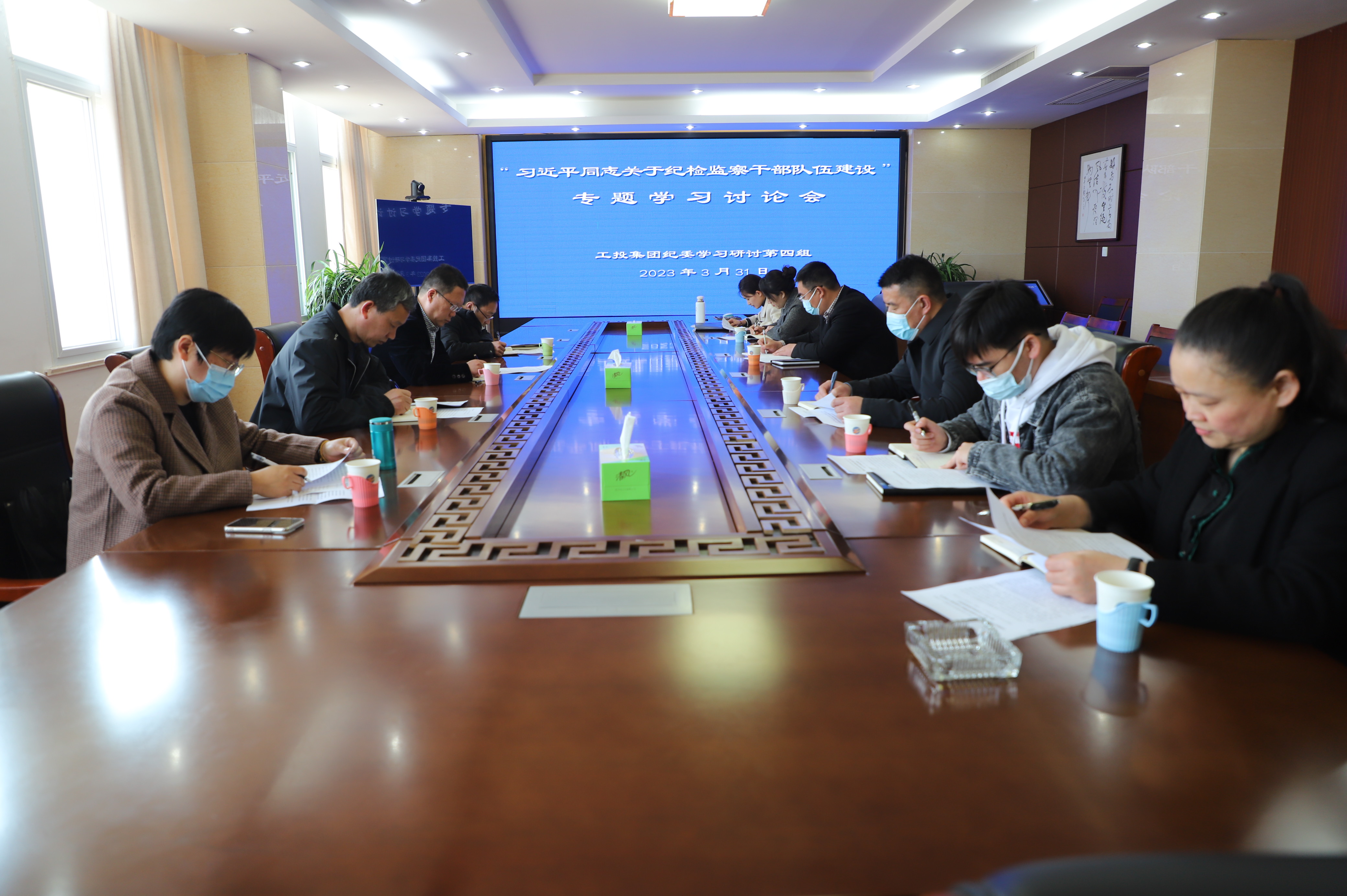 2023年3月31日,工投安博(中国)官方纪委第四研讨组全体成员在灌西投资公司三楼会议室召开“习近平总书记关于纪检监察干部队伍建设”专题学习讨论会,第四研讨组组长王克平书记主持会议。