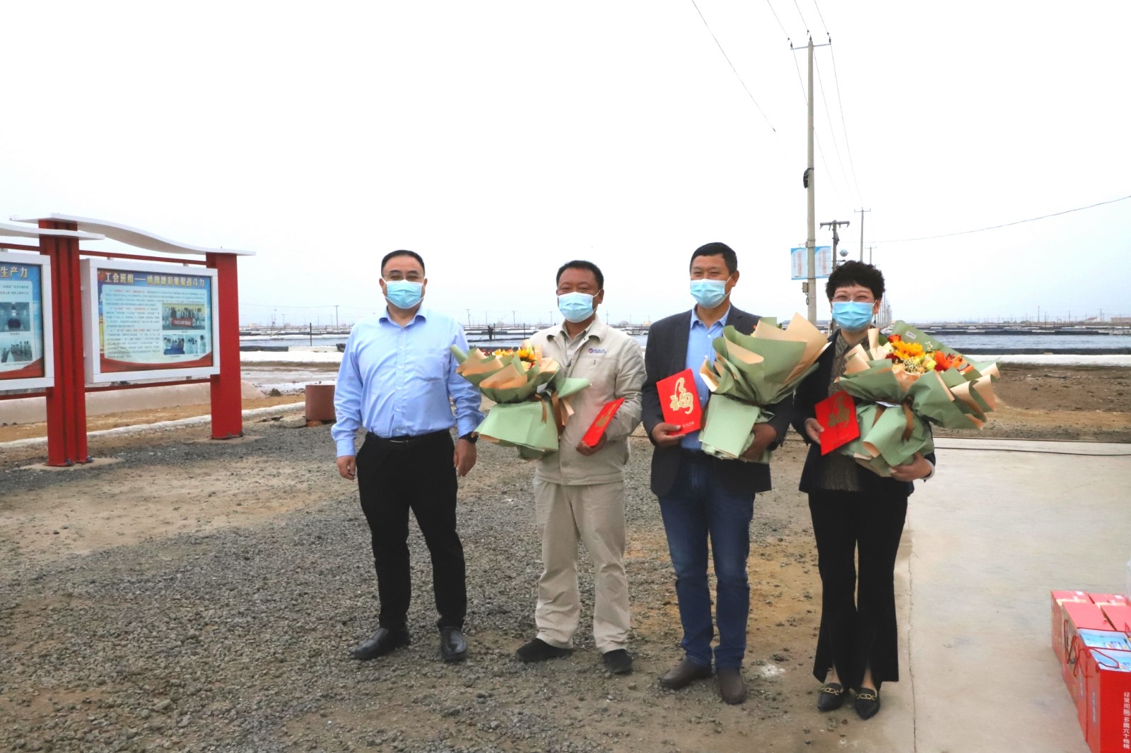 4月25日上午,杨龙董事长一行带着鲜花和慰问,来到日晒制盐新河制盐分公司八班看望了灌西劳模代表王绪华、祝星星、王宏,与他们亲切交谈,聊家常、问冷暖,将党的关怀、工会的问候送到他们手中、心中。与此同时,杨龙还慰问了八班全体员工,给他们送来饼干、八宝粥、饮用水等慰问品。