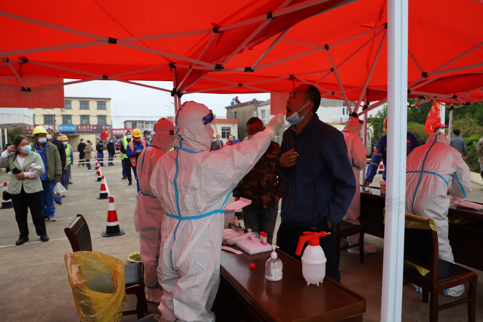 为了配合做好这一轮的全民核酸检测工作,从核酸检测前期的场地准备到居民队伍的秩序维持,从协助医护人员做好消毒、信息录入到现场管理,灌西投资公司广大志愿者奋勇上前,全过程参与其中。由于之前天气有雨,早在凌晨3点多钟,公司志愿者们就来到现场部署核酸检测场地,及时做好设置隔离区,划出一米线等工作,确保了早上5点半点准时开始检测。
