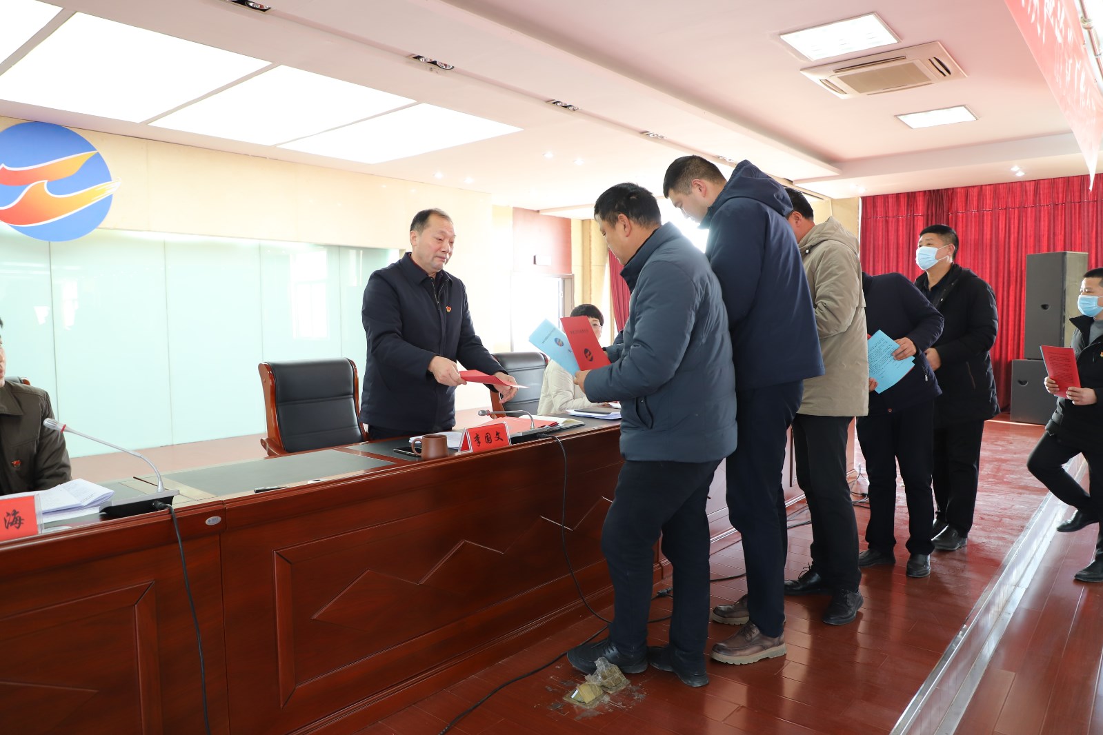 党委书记、董事长、总经理李国文作《全面从严治党工作报告》,纪委书记朱文海同志作《纪检工作报告》;埒南制盐公司、社区管理中心、宵洋物流等十五个支部签定了《党建工作目标责任书》和《全面从严治党责任书》。