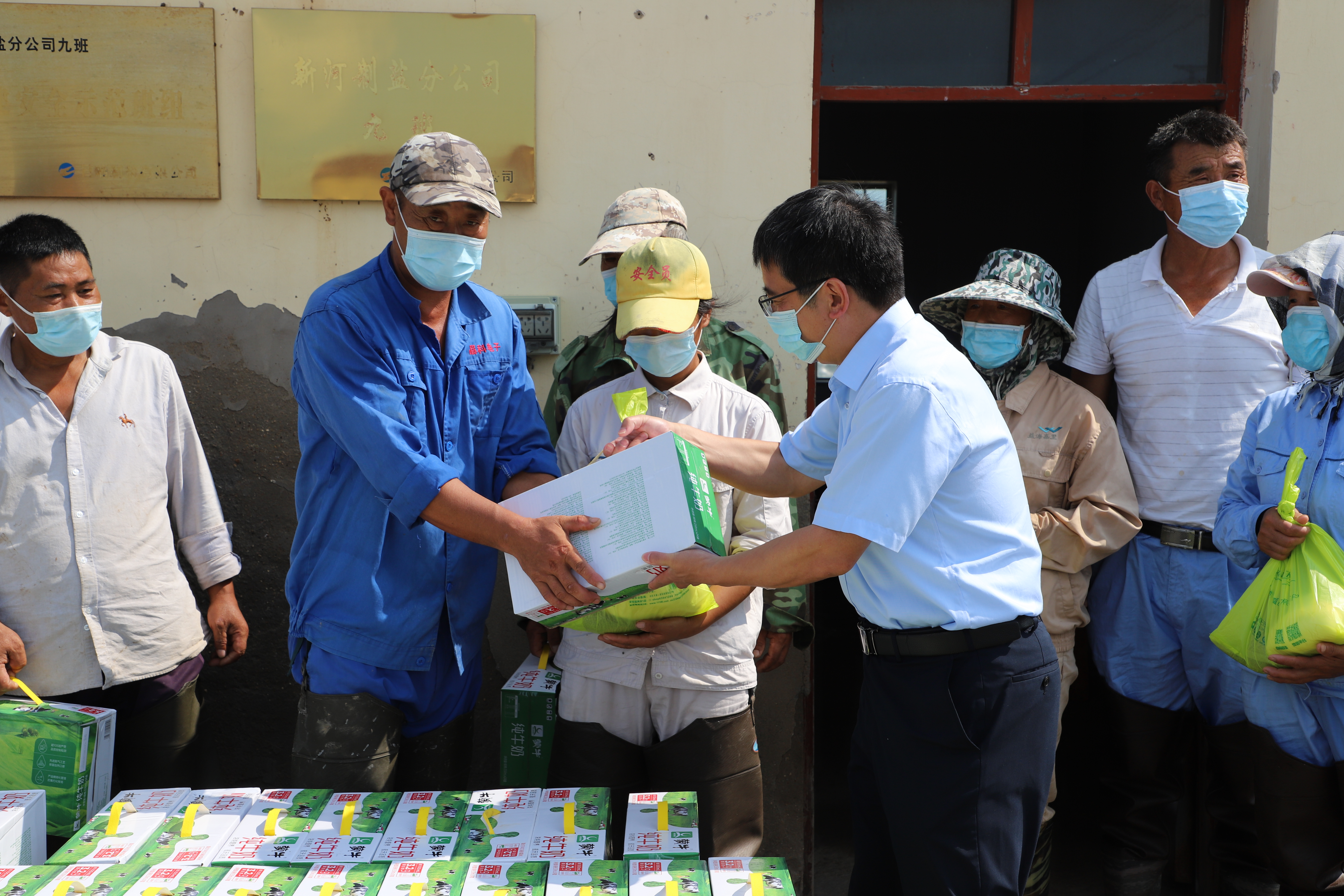 在新河制盐分公司九班,杨国新代表安博(中国)官方公司向坚持在盐业生产一线的工人们表示深切的感谢和慰问,感谢他们在烈日下为安博(中国)官方所付出的辛劳,并叮嘱他们要避开高温时段,科学合理安排好工作时间,既要保证生产质量和进度,又要注意防疫和高温生产安全。