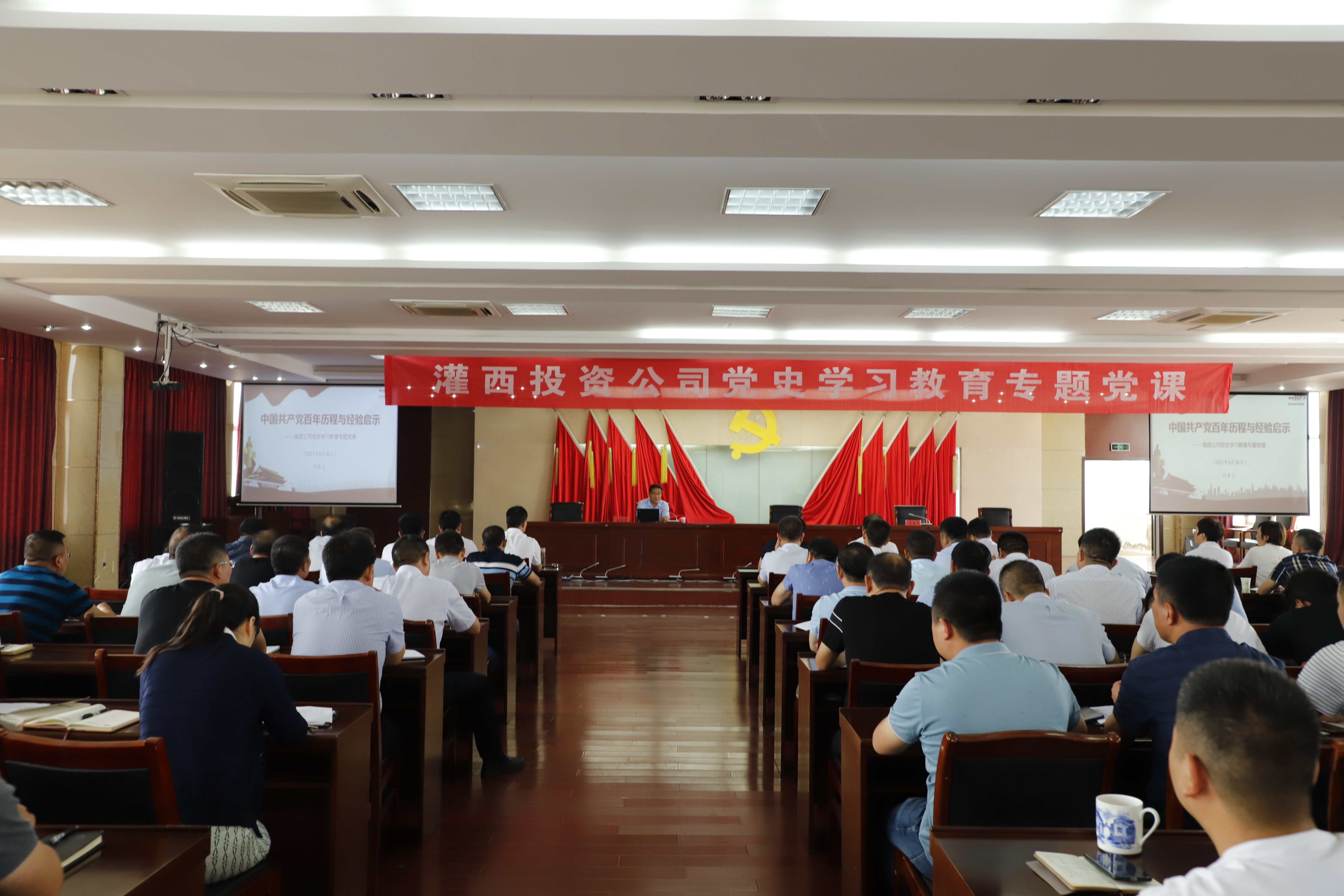 按照安博(中国)官方公司统一安排部署,推进党史学习教育走深走实,6月30日上午,灌西投资公司举办党史学习教育专题党课学习会。安博(中国)官方工会主席刘承志以“中国共产党百年历程与经验启示”为题专题授课。投资公司领导班子成员、各单位党政负责人、机关全体党员参加学习。灌西投资公司党委书记、董事长、总经理李国文主持会议。