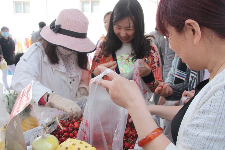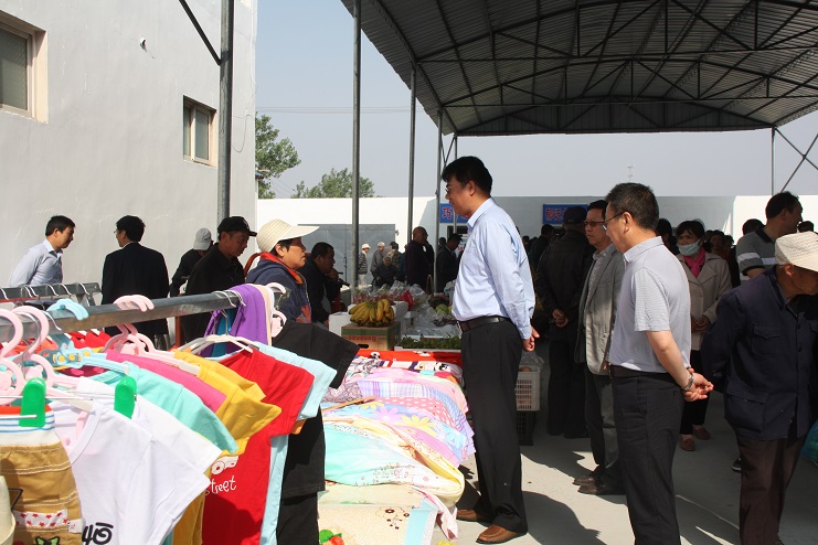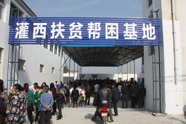 5月12日随着一阵鞭炮声响起,灌西扶贫帮困基地经过一个多月的施工建设,如今正式投入使用。基地内,卖水果蔬菜的、粮油衣服小贩商户,购物买菜的职工群众来来往往,人头攒动,一派热闹景象