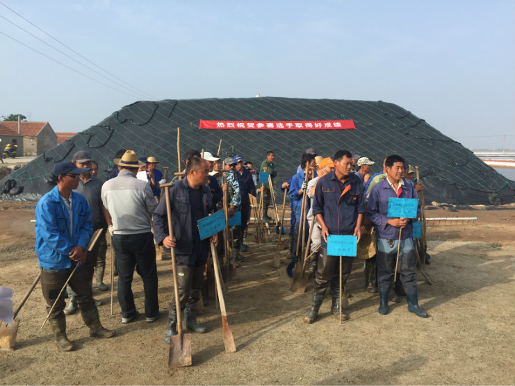 比赛开始前,生产服务公司经理王绪前首先就天沟建设要求、评分标准等事项进行了现场说明。7点20分,随着裁判员的一声令下,比赛正式开始。参赛选手们按照赛前抓阄序号,迅速投入到比赛中。赛场上,每一组选手都分工明确,浇水、翻泥、踩实、做埝、整平一气呵成,大家都表现的极为熟练,充分展示了参赛选手扎实的基本功。比赛中,三位裁判在比赛场地来回巡查,认真记录每一组参赛选手的劳动过程,力求做到公平、公正。9点20分,随着最后一组选手的工作完成,比赛正式结束。随即,三位裁判又根据比赛过程中的记录情况结合最终工程质量对每一参赛小组进行综合评分。最终,来自埒南制盐分公司的章保卫、高明成荣获比赛第一名;江海兵、张春连以及尹步松、汪礼兵两组选手荣获第二名;新河制盐分公司朱明、戴继明,郁雷敏、李正军,杨春旭、史春海三组选手荣获第三名。