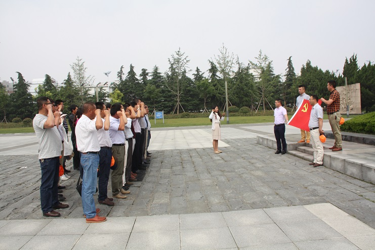 大家在新四军纪念碑前,面对党旗,重温入党誓词。来到纪念馆,在讲解员的引导下,一一参观了序厅、6个展厅、和一个将帅人物馆。展览大厅内,陈列着新四军所属各部队坚持抗战的资料、图片、照片和文物,再现了叶挺、项英、陈毅、刘少奇、粟裕、张云逸、黄克诚、彭雪枫、李先念、谭震林、张鼎丞等人领导的新四军浴血奋战的艰苦斗争历程。