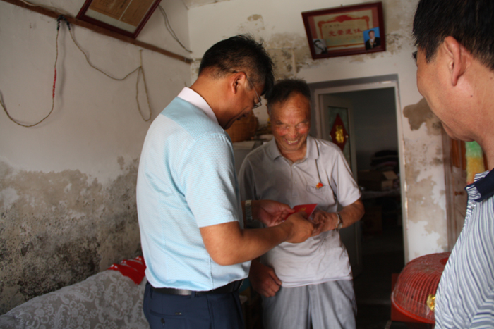 为纪念党的生日,充分体现公司党委对老党员的关怀和爱护,6月30日,灌西投资公司党委书记王德志、副书记王保平等一行走访慰问老党员和生活困难党员。每到一处,王德志书记都亲切地和老党员拉家常,为老党员佩戴党徽,赠送党章,详细了解老人的身体状况和生活情况并送上慰问金。