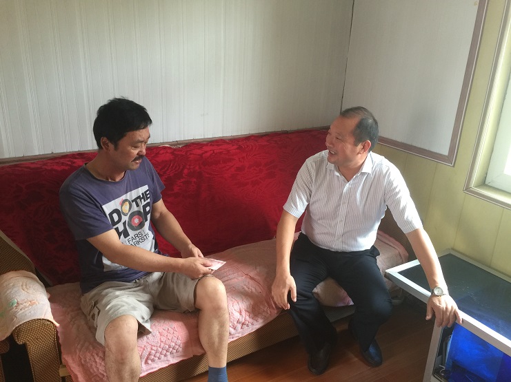 7月28日,投资公司总经理李国文一行带着慰问金,来到日晒制盐公司患病职工孙荣成的家里,为他送去公司党委的关爱和温暖,鼓励他树立战胜病魔的信心和勇气。