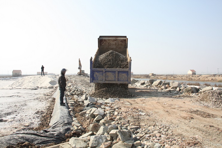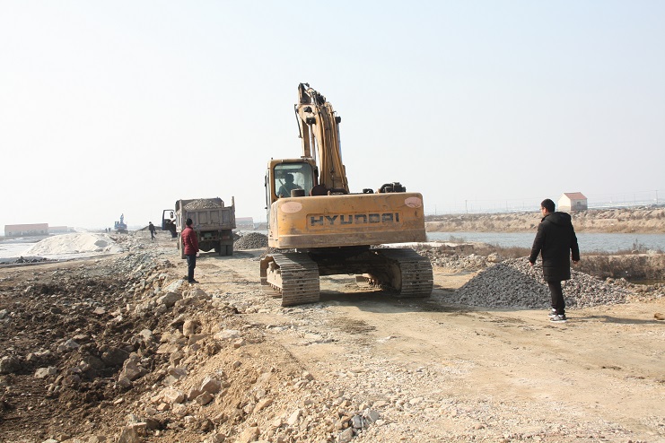 2月15日,在新河制盐公司七至十班运盐路施工现场,安博网页版看到南翼公司项目工程分公司的员工正在指挥两台小型工程车将石子倾倒在路基上,两台挖掘机正忙于将运送来的石子整平。运盐河对面,三辆满载土夹石的大型工程车一字排开,正等待卸载。据了解,目前正在施工的是新河制盐分公司二期运盐路维修改造工程,该工程改造路段全长3300米,计划总投资193万元,其中路基铺设部分由日晒制盐公司出资45万元,路面部分则由县交通局承担,预计需要投入148万元。该工程于去年底开始施工,预计三月中下旬全部铺设完成。另外新河制盐分公司一期一至十二班3300米运盐路改造工程计划将于今年下半年实施。
