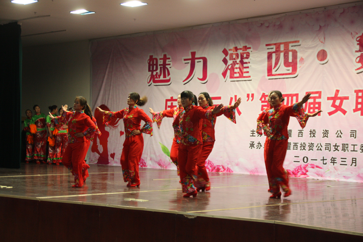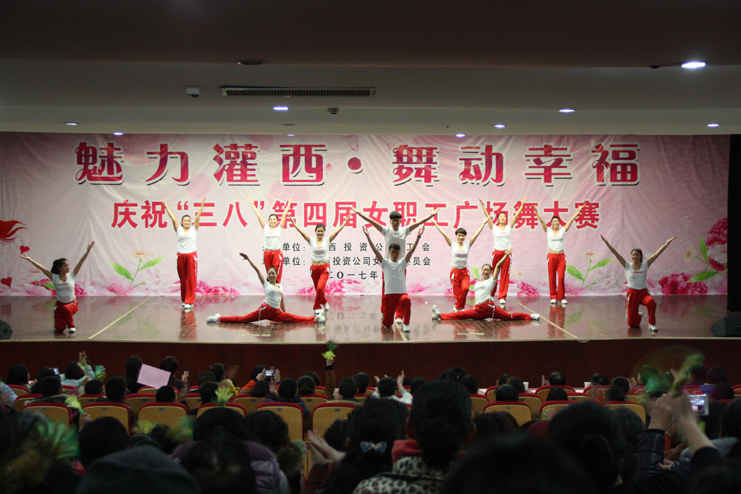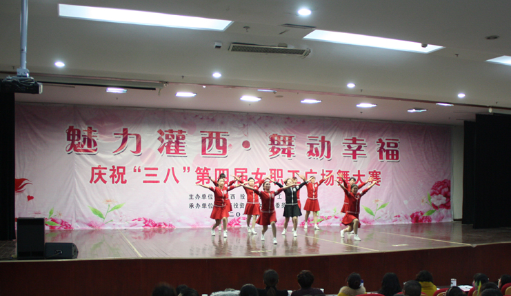 3月8日下午,灌西投资公司第四届“魅力灌西•舞动幸福”广场舞比赛在灌云县临港产业区管委会礼堂举行,由公司各单位的女工组成的8支代表队参加角逐,广大女工用婀娜的舞姿和精彩的表演庆祝国际“三八”妇女节的到来,观看比赛的职工群众有400余人。