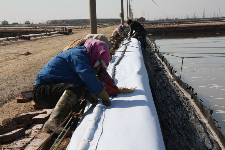 3月14日下午,风和日丽,在日晒制盐公司广阔的结晶生产区,洁白的盐廪、洁白的格堰在阳光照耀下,显得格处醒目,只见工人们有的在扒盐,有的在破碴,还有的在更换塑布......全公司上下一派大干场景。安博网页版在新河制盐分公司的八班一期生产区,只见工人们两人一组,蹲在池堰边,用土工布固化格堰,进行滩场亮化,这一片区域是公司正在建设的食用原料海盐生产基地。在一期与二期间的生产路上,安博网页版遇到了该公司经理安树林,他正从南边班组一路检查走来,他告诉安博网页版,自公司职代会召开过后,新河制盐分公司通过支委会、班组会迅速传达公司职代会精神,贯彻落实班组承包方案,对照全年产盐55万吨的目标,做好任务分解。当前盐业生产积极做好破碴、活碴、更新塑布等工作,全力推进扒盐工作,今年以来已经扒盐3.6万吨。
