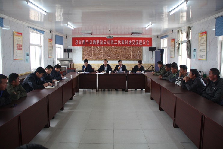 4月25日下午,日晒制盐公司在生产服务公司会议室召开一季度总经理与职工代表对话交流座谈会。公司总经理李国文、工会主席王保平、副总经理古浩光,有关部门负责人以及来自基层单位的近20名职工代表参加了会议。