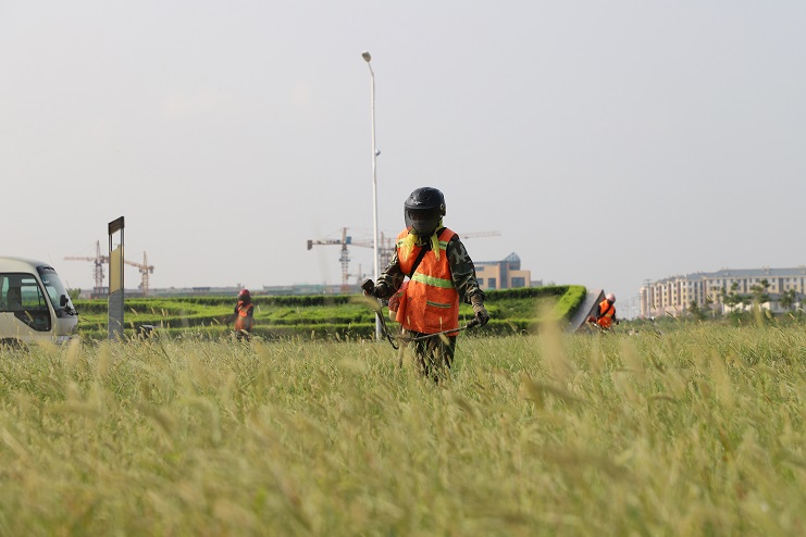 连日来,在临港产业区办公楼前,安博网页版看到几名南翼绿化公司的工人正在草坪上挥动割草机,忙碌的进行着除草作业。据了解,为了避开高温时段,他们早上6点就开始工作,许多绿化工人都是五点多在家匆忙吃完早饭就赶往工作现场,有的甚至空腹上阵。工作现场,在经过一个夏天的生长,不少地方的杂草都近半米高,草丛内还有不少的碎石子等杂物,为了做好自身防护,工人们穿着厚厚的衣裤,戴着口罩、头盔,肩扛除草机,一工作就是一上午。虽然近阶段气温逐渐下降,但近30°的气温还是让工人们吃不消。为了尽快完成工作目标,每一名工人都在咬牙坚持,默默地为更多的人营造一个优美、整洁的环境而做出自己的贡献。(封杨)