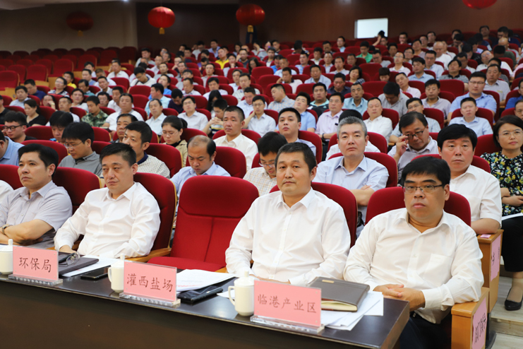 9月15日,灌云县临港产业区举行利民造纸等重大项目推进誓师大会,灌西投资公司董事长、党委书记王德志,副总经理徐进军出席会议。