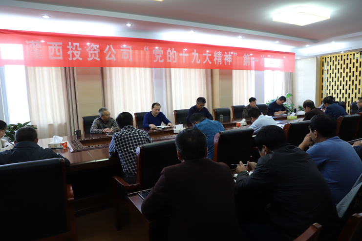 王德志书记在会上指出,深入学习宣传贯彻党的十九大精神,是当前和今后一个时期的首要政治任务。全公司上下要迅速掀起学习宣传的热潮,以学习的实际成效推动各项工作落实。要通读原文,融会贯通,学深悟透,还要广泛深入组织开展学习宣传教育活动,引导广大党员干部充分认识十九大的重要意义,深刻理解十九大精神,明确十九大提出的新任务、新要求,开创灌西投资公司发展新局面。